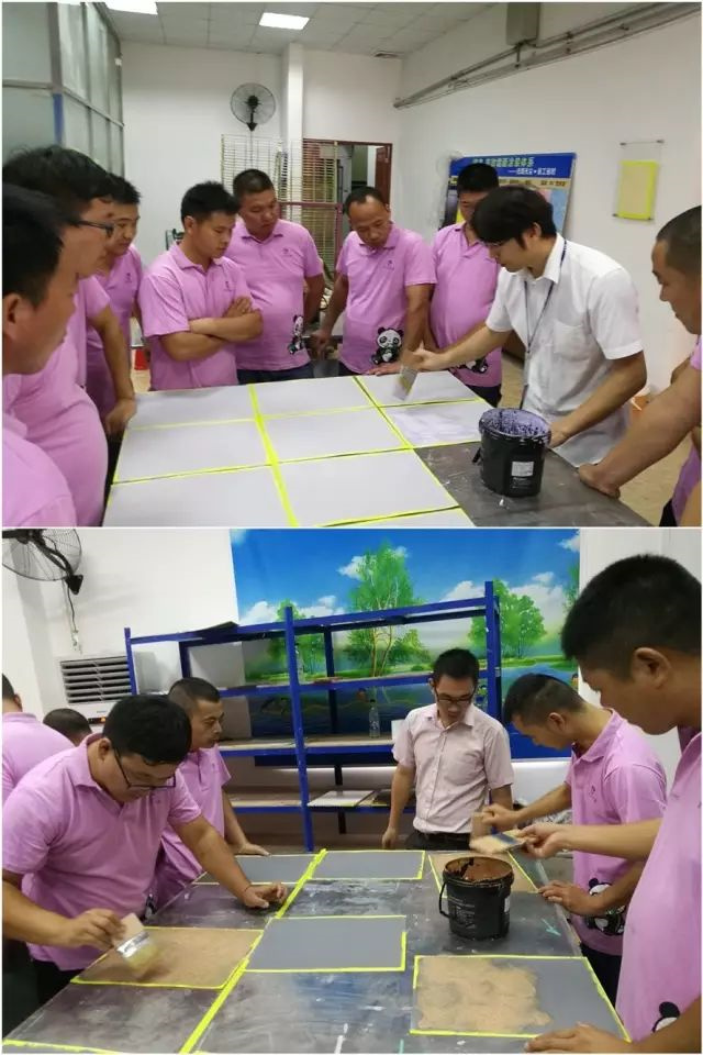 除了藝術漆的施工培訓外,嘉麗士事業部還安排了水性木器漆施工培訓以及墻面涂裝一體化的施工培訓。水性木器漆是緊跟著墻面水漆市場變化最大的涂裝產品,油改水的必然趨勢促使著水性木器漆的大力發展。嘉麗士藝術水漆高瞻遠矚,在推出水性木器漆的同時,也培養著施工服務人員,因為:只有專業才能贏得市場!
