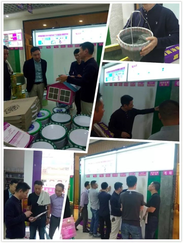 浠水嘉麗士陳總帶領各部門負責人到工地進行觀摩,還展示了浠水嘉麗士墻面涂裝一體化的運營方法,除了堅持嘉麗士公司要求的九道施工工藝,陳總還為到店的客戶展示了各道施工工序的配套產品,用直觀、鮮明的產品效果作展示,讓客戶相信嘉麗士的品牌實力與專業,從而促成訂單的成交。