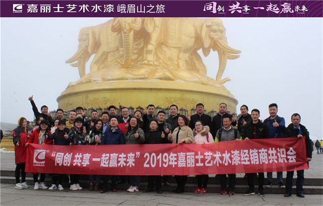 為了本次會議結束得更有意義,嘉麗士特地在15日安排了峨眉山祈福之旅,希望團隊能堅定不移的攜手同行并成功登頂,一起享受在云端之上俯瞰中國大地,描繪嘉麗士藝術水漆的市場版圖的熱血時刻!歷時三天的會議行程,已經在嘉賓們的不舍之中完滿結束,大家都帶著改變和突破和少許意猶未盡踏上歸途,同時新一年的征程也正適時揚帆起航,希望在新的規劃里,嘉麗士藝術水漆的家人們可以高歌猛進,協起彼此的手,同創共享贏未來!