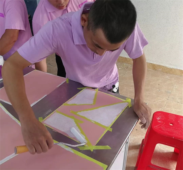 底漆施工、基礎漆施工、刷涂施工、中涂施工、印花擦色、色塊效果等等,逐一講解并演示,并且讓學員現場實操。