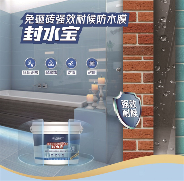 宅即麗封水寶免砸磚耐候防水膜,避免了傳統防水修繕需要從底到面撬開從頭再來的“大動干戈”的麻煩,且一體成型無遺漏,拉伸彈性強,強效耐候無懼紫外線,可以用于戶外陽臺、屋頂與外墻防水,施工簡便不妨礙業主正常居住等特點,大大彌補了防水修繕市場的空白。