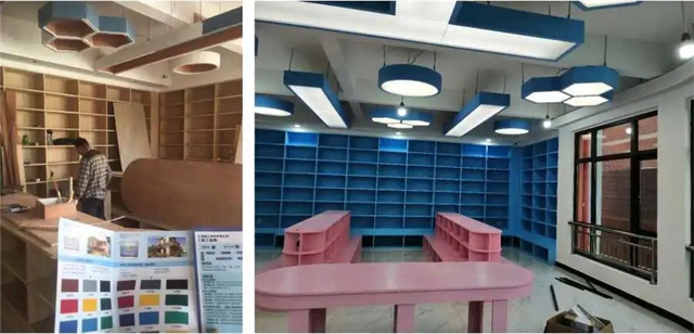 隨著醴陵實(shí)驗(yàn)小學(xué)圖書館內(nèi)外墻涂裝的逐步完工,嘉麗士水漆獲得了項(xiàng)目承包商、學(xué)校師生的一致好評(píng),對(duì)嘉麗士水漆凈味環(huán)保及色彩的空間運(yùn)用設(shè)計(jì)稱贊有加。
